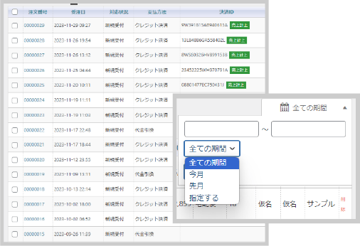 注文番号や対応状況など、約 50 の項目の表示日表示の設定も可能です。