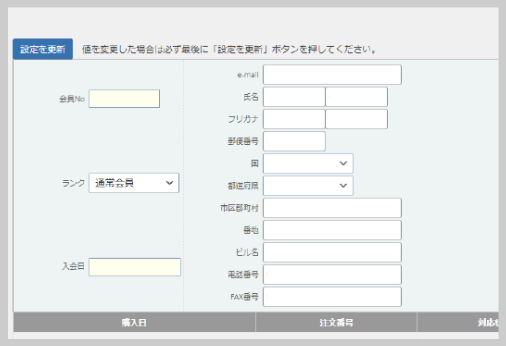 お客様の基本情報や、いつ何を購入されたかなどの情報をお客様毎に管理できます。