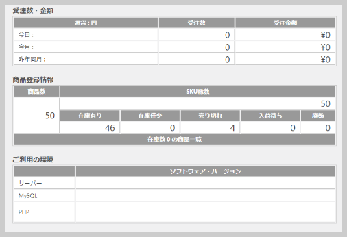 今日・今月・昨年同月の受注数及び受注金額を表示します。